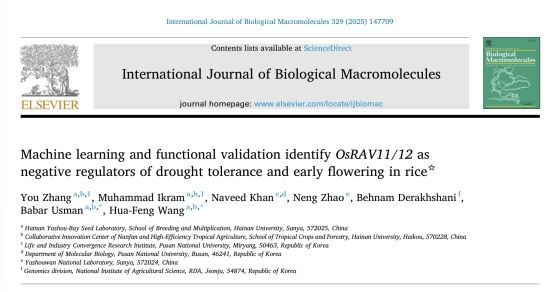 随着全球气候变化加剧,干旱已成为威胁水稻生产的主要因素之一。王华锋教授团队的这项研究,如同为作物育种家提供了一份精确的“基因地图”。未来,这种结合人工智能与基因功能验证的研究模式,有望加速作物遗传改良进程,为全球粮食安全保驾护航。这篇研究成果发表于International Journal of Biological Macromolecules 2025年11月的第329卷第1期。据最新数据,该期刊的影响因子为8.5,属于JCR1区。该期刊主要关注蛋白质、大分子碳水化合物、糖蛋白、蛋白聚糖、木质素、生物多酸和核酸等生物大分子的结构与功能研究。