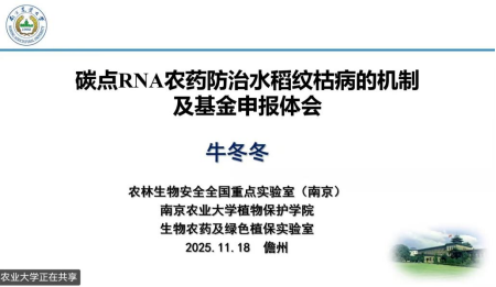 讲座于9:30准时开始,首先王睿副院长介绍牛冬冬教授的主要研究领域和学术成就。随后近一个半小时,牛冬冬教授做了题为“碳点RNA农药防治水稻纹枯病的机制及基金申报体会”的报告,全面展现了团队在生物农药领域的前沿研究进展,围绕研究价值、创新性、可行性等方面分享了自身的国基申报和评审经验,强调好的申报书应包括为什么做(立项依据)、做什么(研究内容)、怎么做(研究方案)和谁来做(研究基础)四部分。提出应以评审视角打磨申请书,充分凝练题目和摘要,注意突出自身优势,扬长避短,及时提供正反馈,进而提升申请命中率。同时,鼓励申请人摆正心态,围绕自身研究方向,持续努力进行申报。
