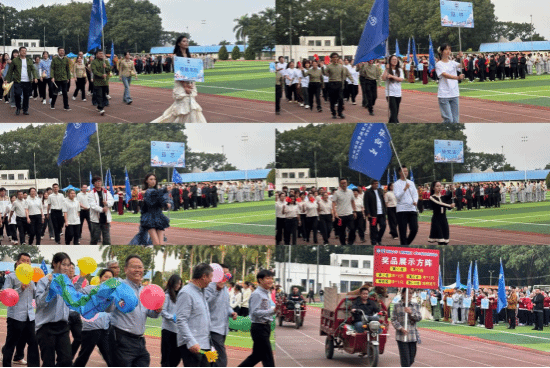 开幕式上,国旗护卫队迈着铿锵步伐引领入场。创意表演方阵精彩不断,街舞社团以动感舞姿点燃全场热情,耕春舞演绎农耕文化的鲜活韵味,说唱调声融合本土特色与青春节拍,竹竿舞伴随着清脆节拍展现民俗风情,多元表演为赛场注入蓬勃朝气。各专业代表队身着整齐服装,精神抖擞入场,充分展现了校区师生昂扬向上的精神风貌。