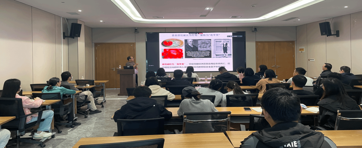 2026年1月4日,四川大学刘明春教授受海南大学热带农林学院园艺系和热带果蔬保鲜技术创新团队的邀请,莅临崖州湾海南大学三亚南繁研究院,以"苦尽甘来:番茄果实甾体糖苷生物碱代谢的精细调控"为题,为学院科研人员带来了一场兼具理论深度与实践价值的精彩讲座。讲座由园艺系主任田丽波教授主持,现场交流热烈,学术氛围浓厚。