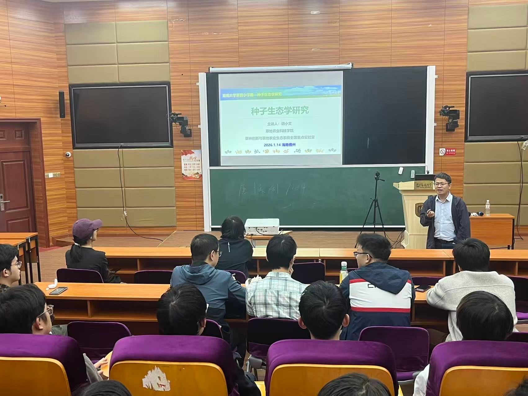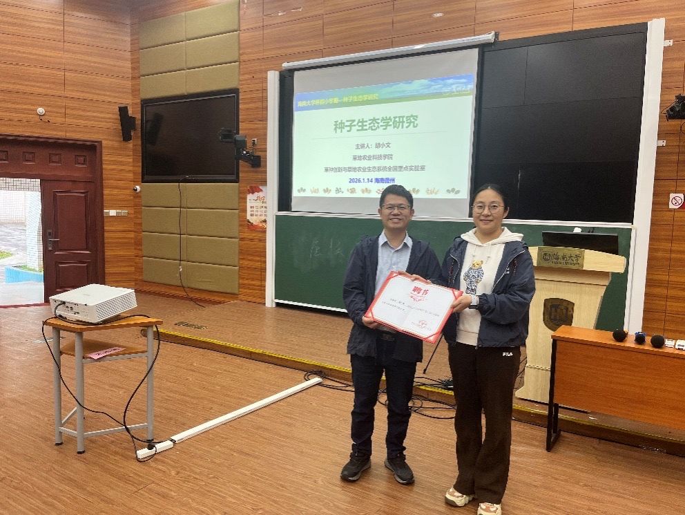 2026年1月14日至15日,兰州大学胡小文教授应邀来到海南大学儋州校区,在3教109教室为热带农林学院师生开展了为期两天的冬季小学期学术讲座。热带农林学院部分教师及农学专业本科生共同参与了本次学术活动。