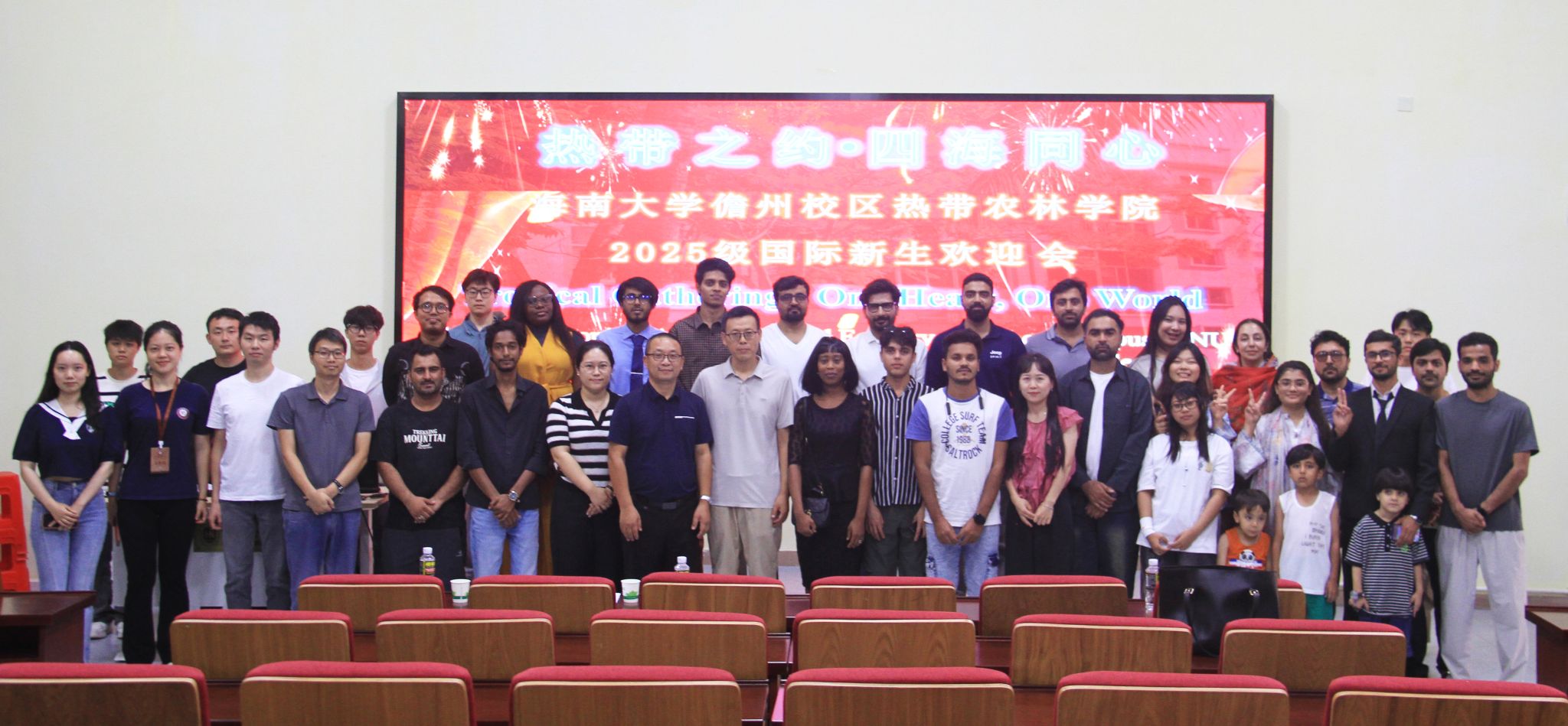 2026年4月17日下午,海南大学热带农林学院在儋州校区7104教室成功举办了以“热带之约·四海同心”为主题的2025级国际新生迎新会。来自尼日利亚、印度尼西亚、巴基斯坦、孟加拉国等多个国家的18名国际新生,与8名国际老生及8名中国学生代表齐聚一堂。