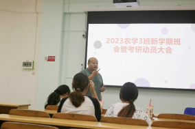 会上,郭鑫老师结合学院近年来研究生升学情况,分析了当前考研形势与农学学科的发展方向,鼓励同学们尽早规划、科学备考。他强调,考研既是学业进步的重要途径,也是提升科研能力与综合素养的关键阶段,希望大家坚定信念、脚踏实地,以持之以恒的努力实现目标。